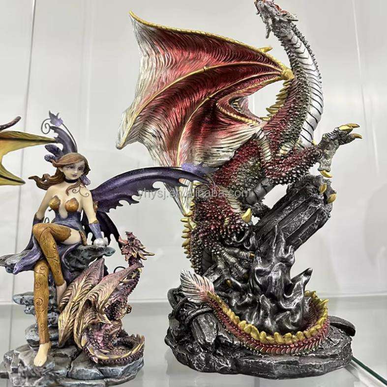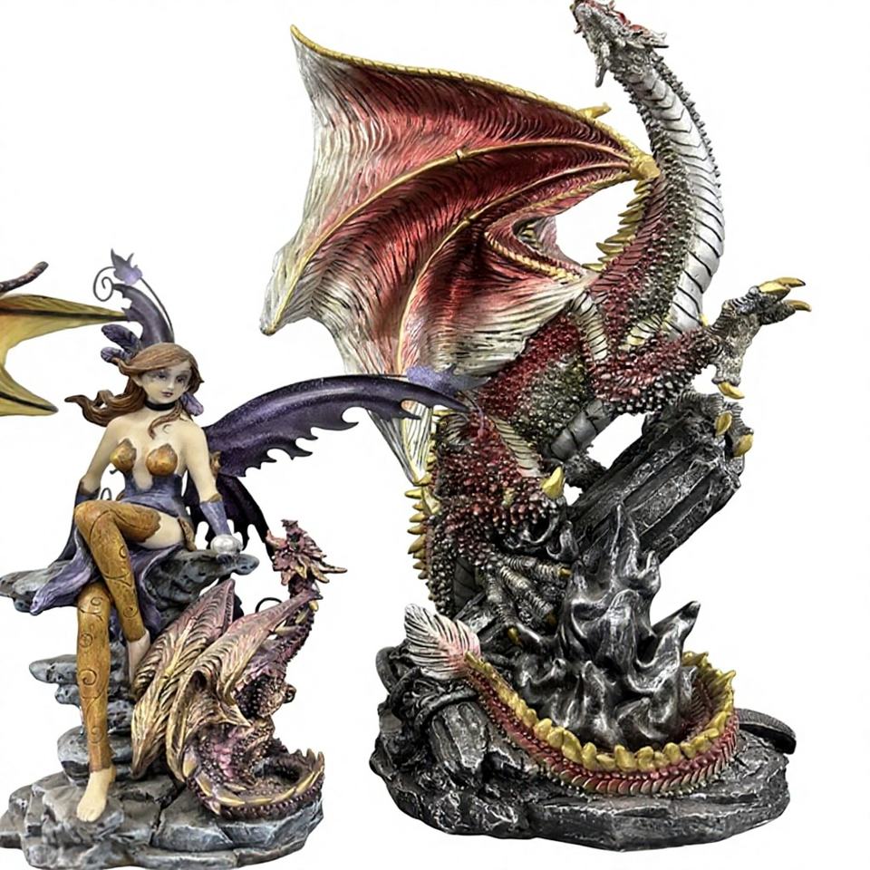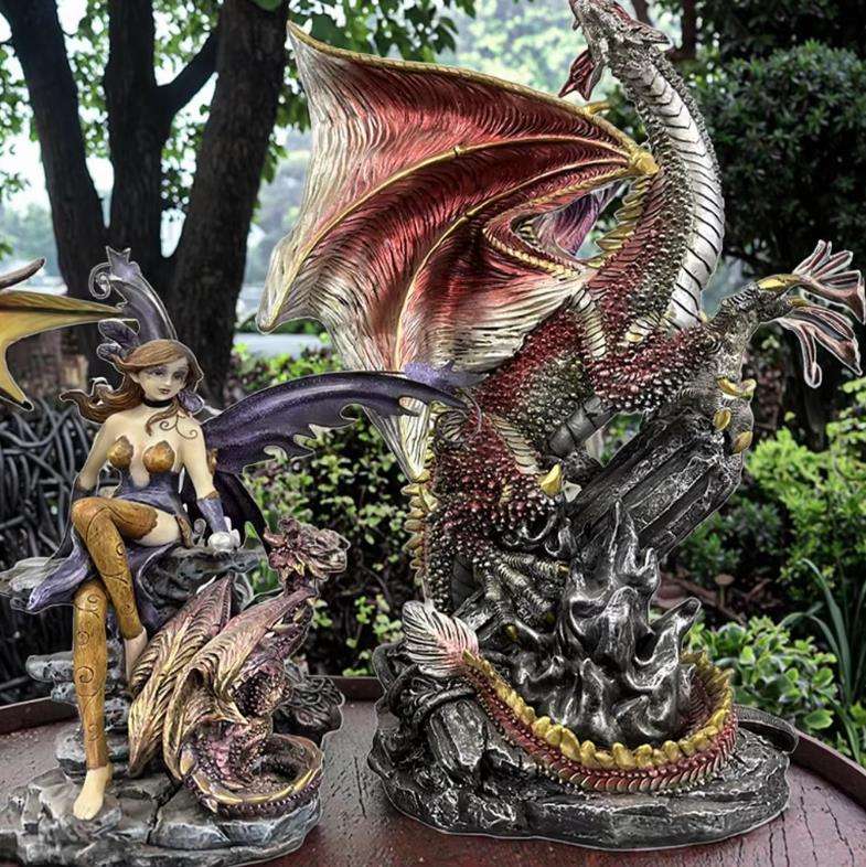 Bellissima Statua di Drago Fatato Viola Seduto, Artigianato in Resina, Decorazione Medievale per Foresta Fantastica