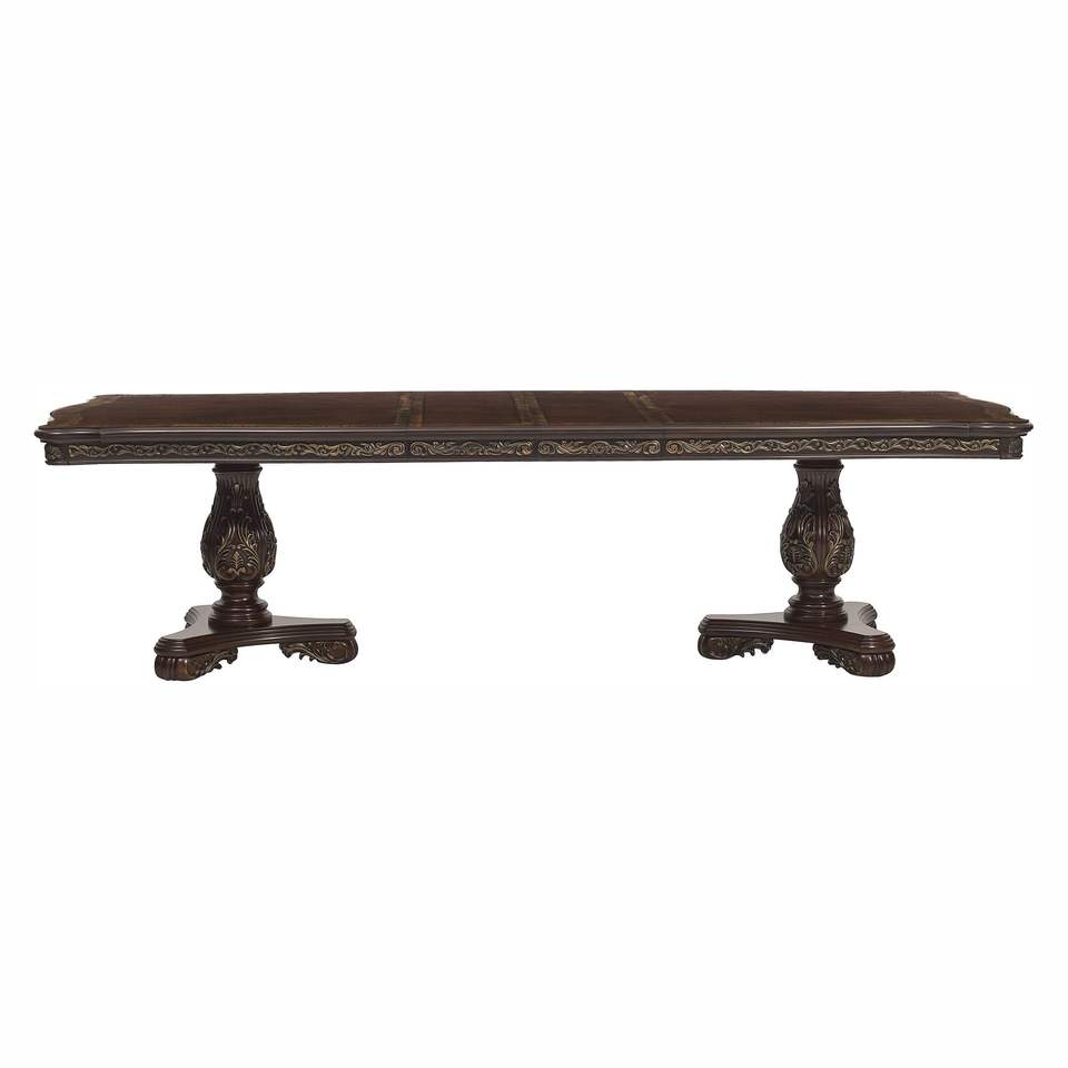 Bellissimo Tavolo da Pranzo Tradizionale Rettangolare con 2 Prolunghe, Finitura Ciliegio con Bordi Dorati