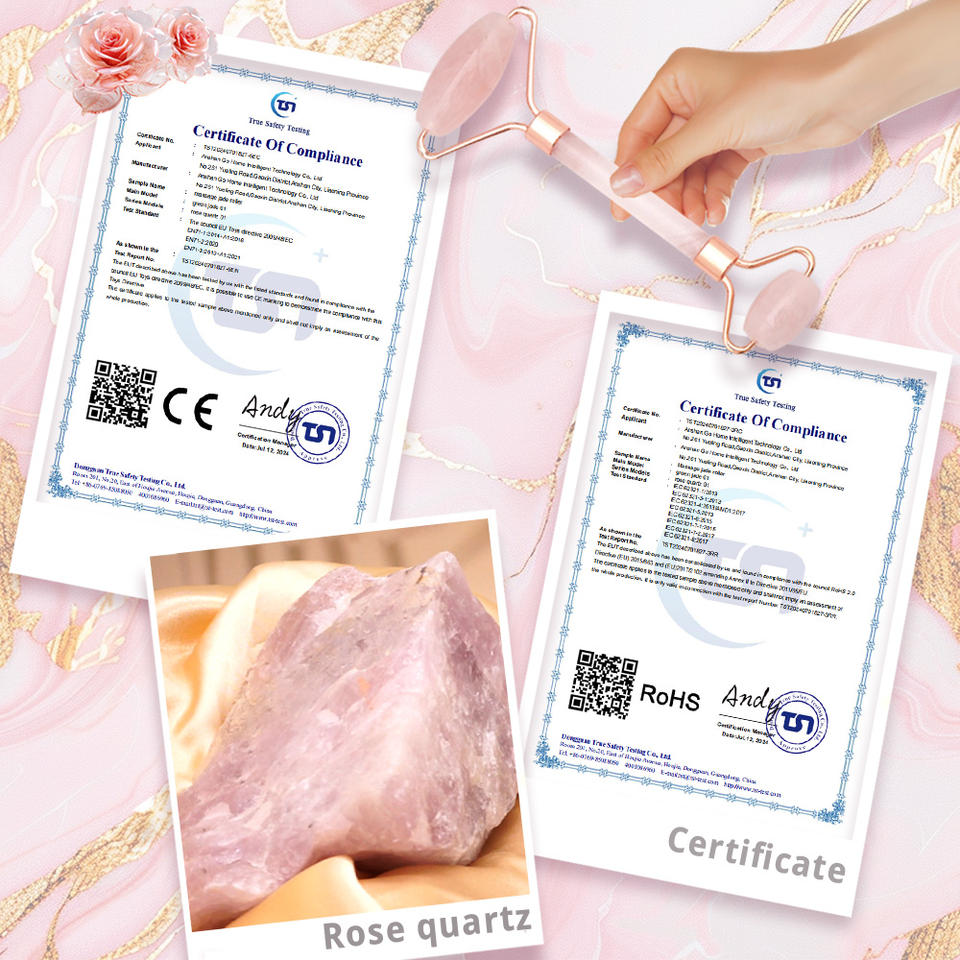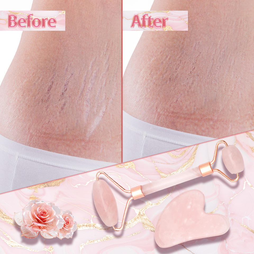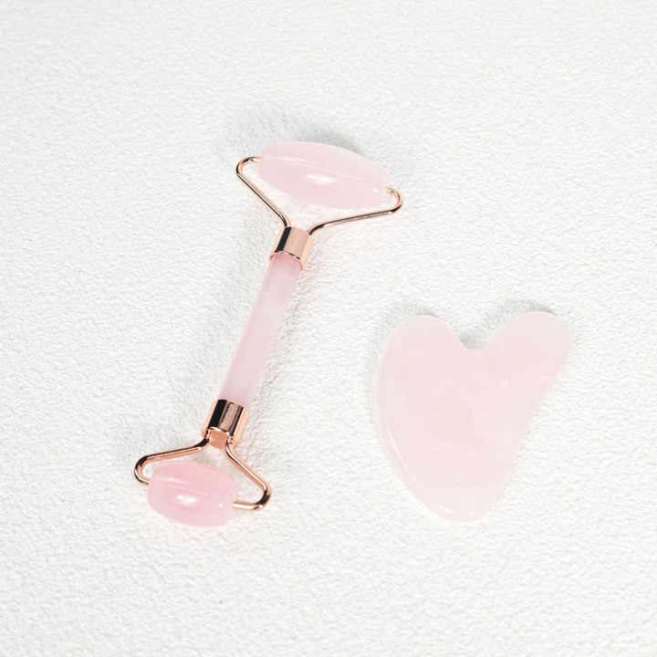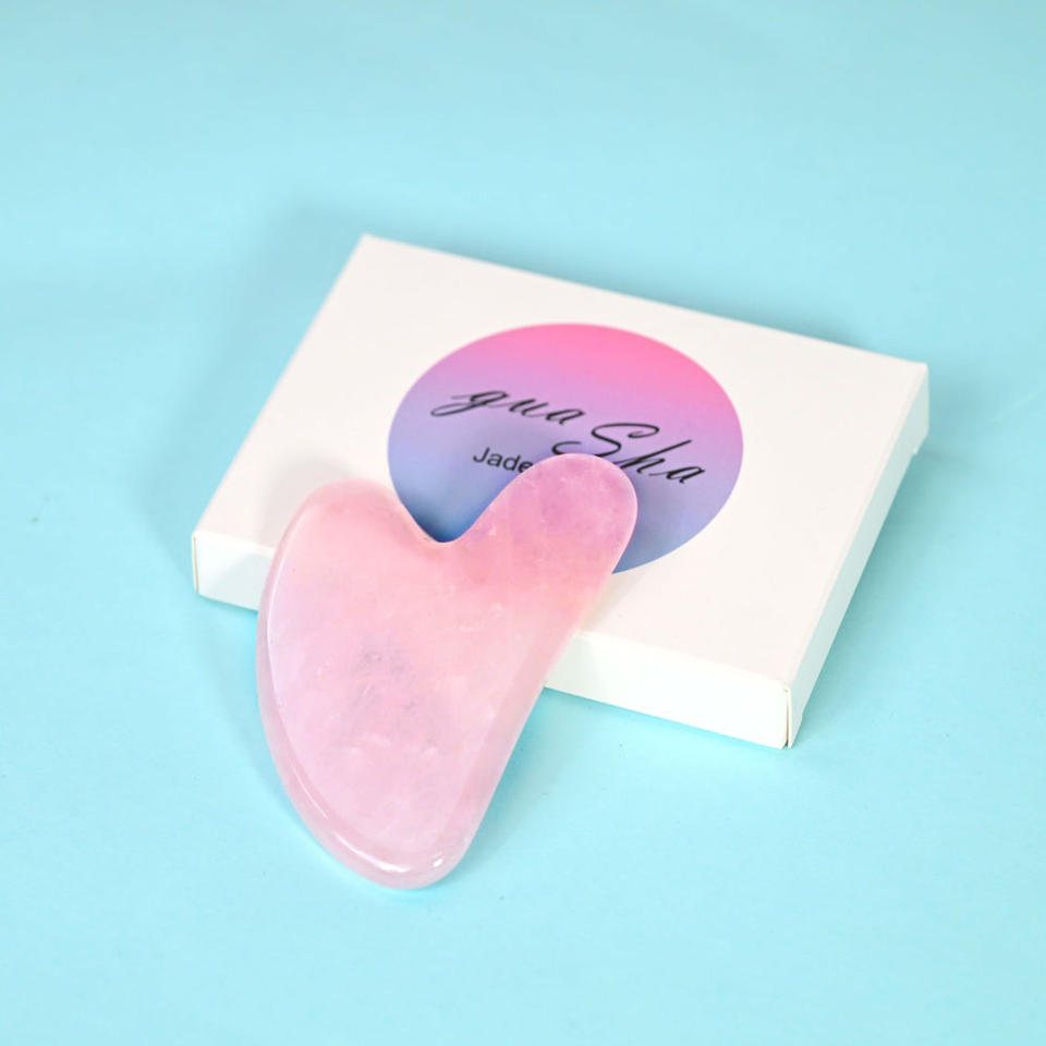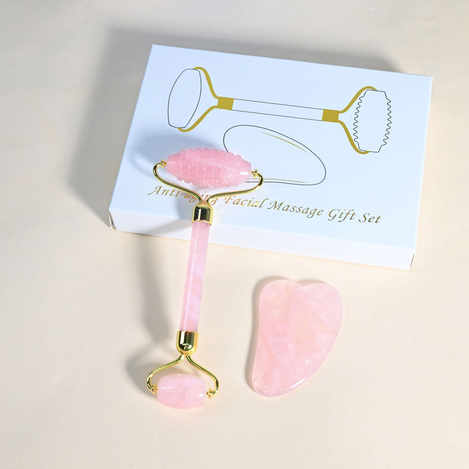 BeautifulGHM quarzo rosa giada rullo Gua Sha Set vera pietra rosa giada a forma di cuore Gua Sha pietra e faccia rullo di cristallo Guasha