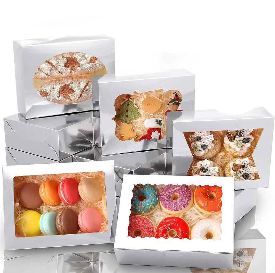 Beautifully Designed Cardboard Cookie Cake Macaron Donut Packing Personalized Custom Transparent Window Silver Cookie Box