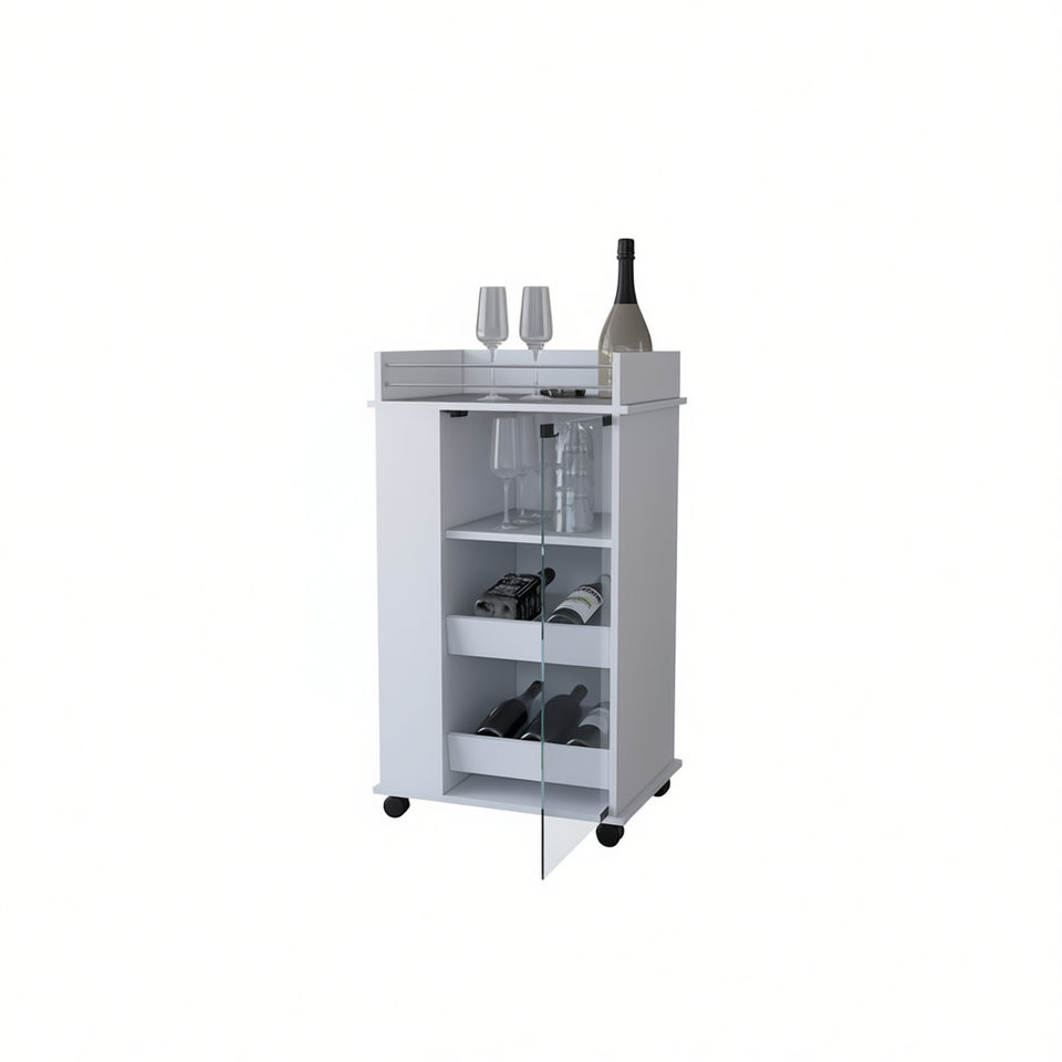 White Bar Cart With Glass Door And Shelves For Home Bar Furniture