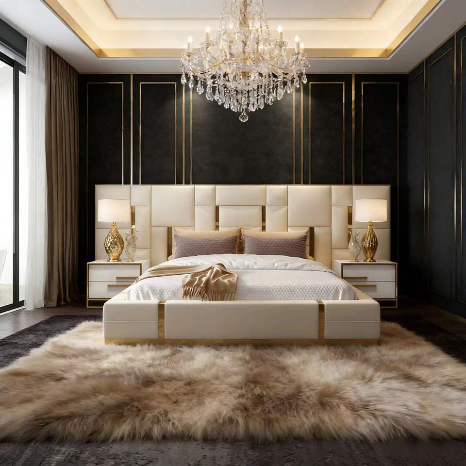Nome del prodotto:Letto matrimoniale con materasso, struttura in metallo, letto king in pelle