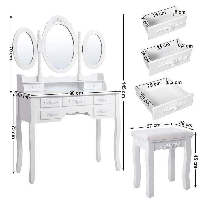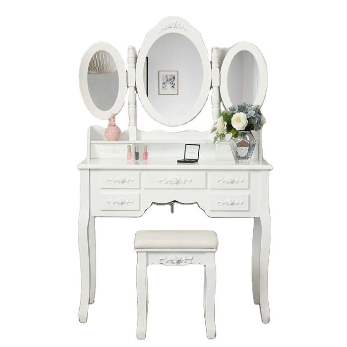 Nome del prodotto:Camera da letto in legno massello comò Europa stile di trucco bianco tavolo con sgabello