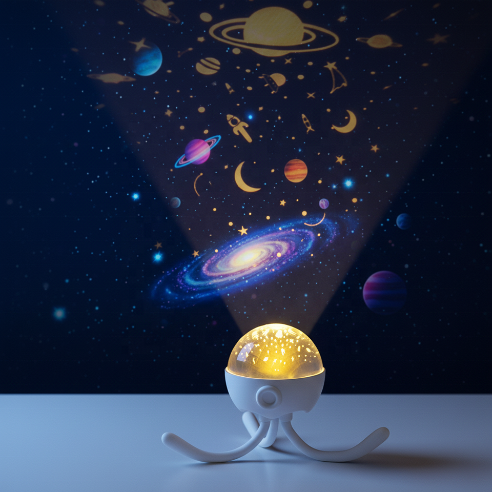 Lampada Notturna per Bambini con Proiezione Stellare, USB, Immagine Personalizzabile, Mini Lampada Notturna a Forma di Polpo, Proiettore Spaziale Stellato per Neonati