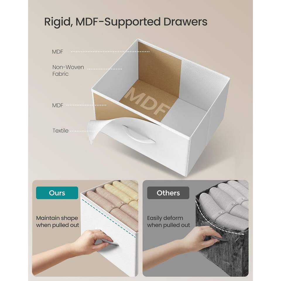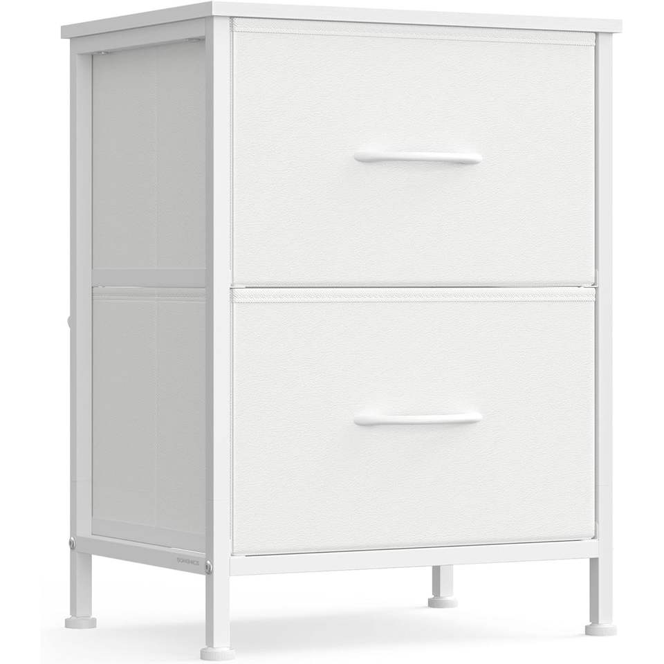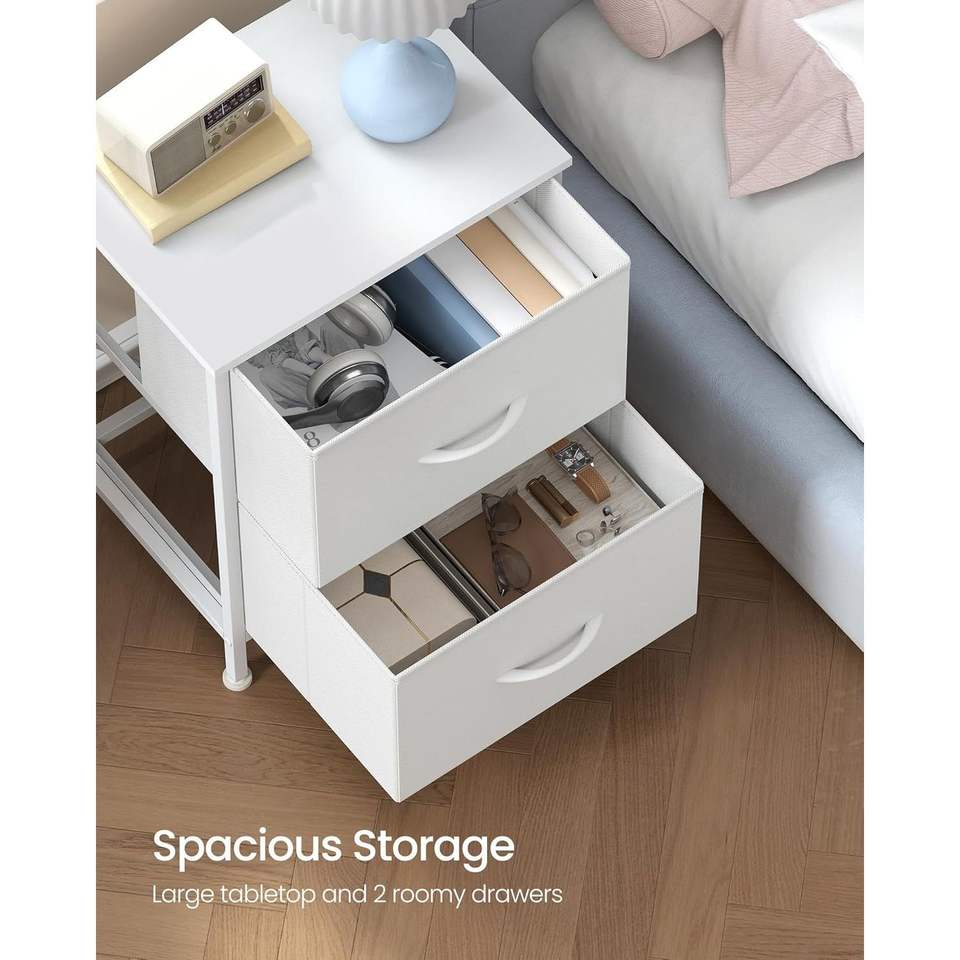 Organizzatore per Camera da Letto in Acciaio e MDF, Cassettiera con 2 Cassetti in Tessuto Non Tessuto, Comò e Comodino