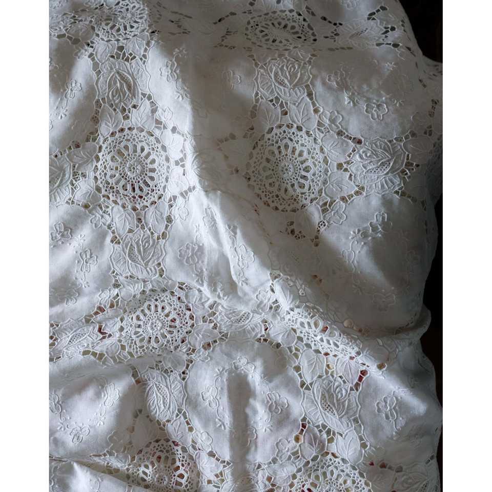 Copriletto con Inserti in Crochet Bianco 256x254 cm