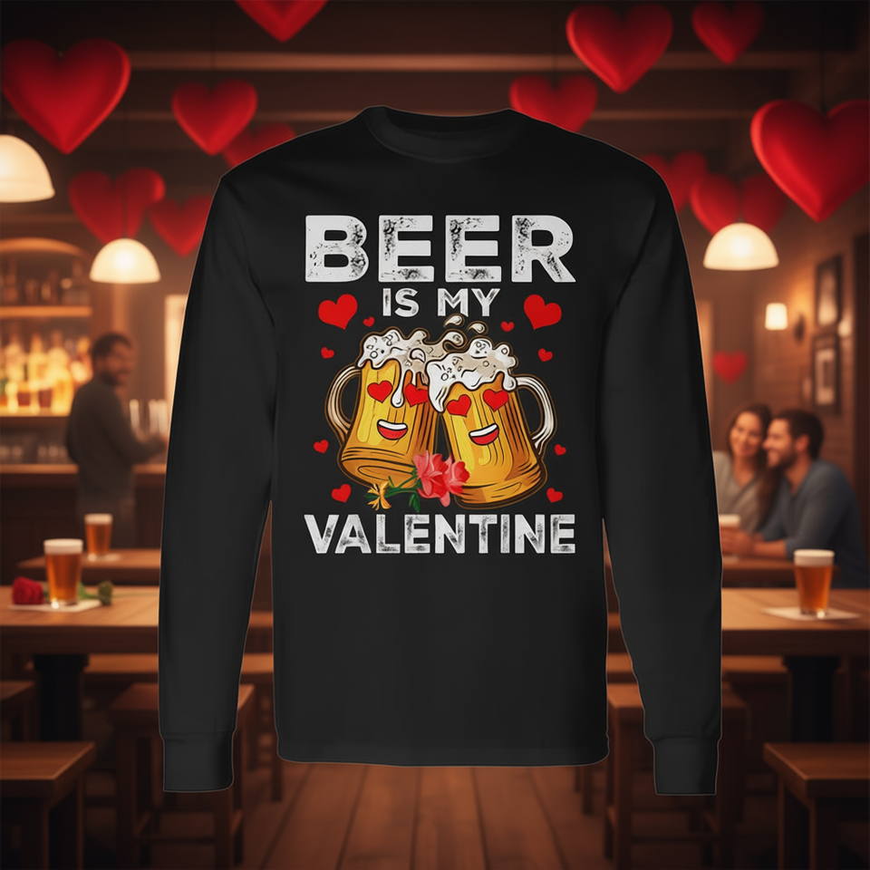 T-shirt a maniche lunghe Beer Is My Valentine Buon San Valentino