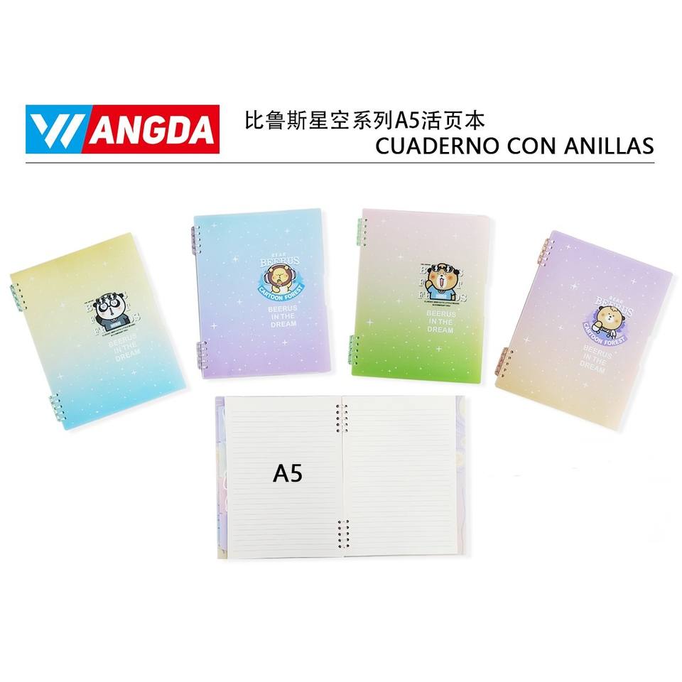 Beerus Starry Sky Series A5 Hard Cover Loose-leaf Book 100 Sheets Linen PP Cover Material Thermal Spiral Binding for Writing
