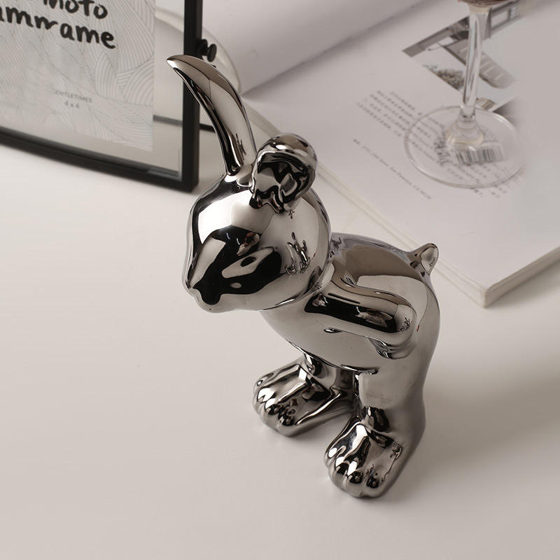 Portabottiglie Decorativo in Ceramica Placcata Argento Stile Europeo Creativo Behanmei, Ornamenti a Forma di Coniglio, Regalo per Matrimonio e Inaugurazione Casa