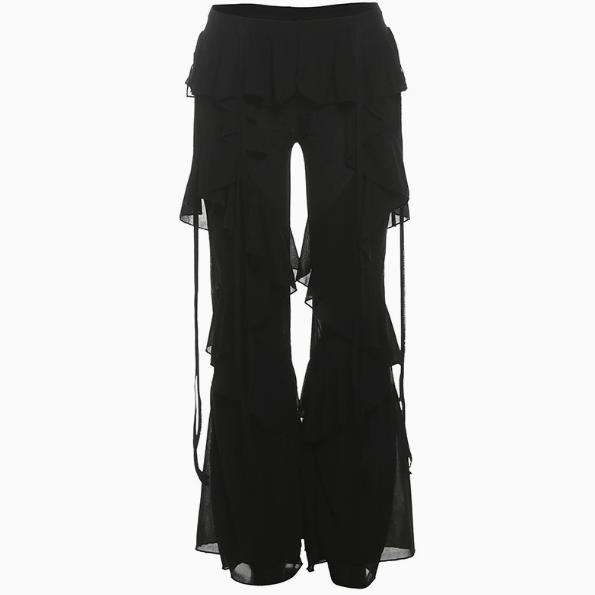 Pantaloni Larghi Beige Autunnali, Pantaloni Leggeri Tinta Unita, Stile Retrò con Design a Vita Alta, Pantaloni da Donna con Volant