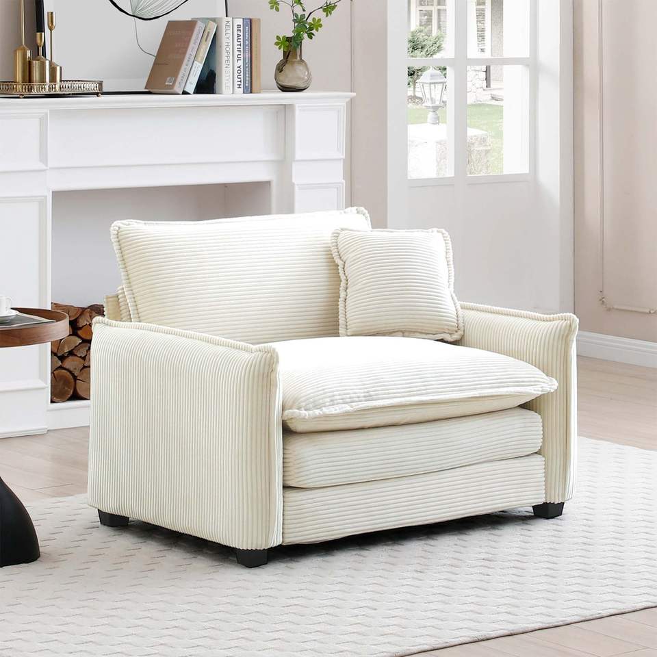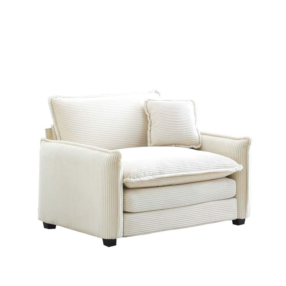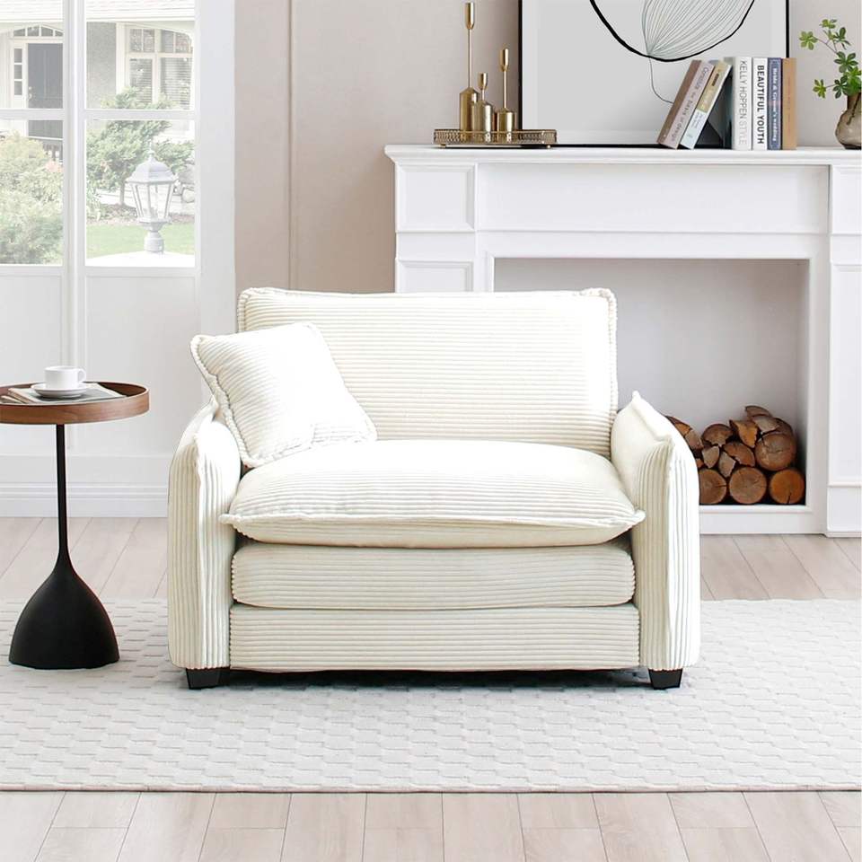 Divano singolo in velluto a coste beige con cuscino singolo, comodo per diverse occasioni - per soggiorno e camera da letto