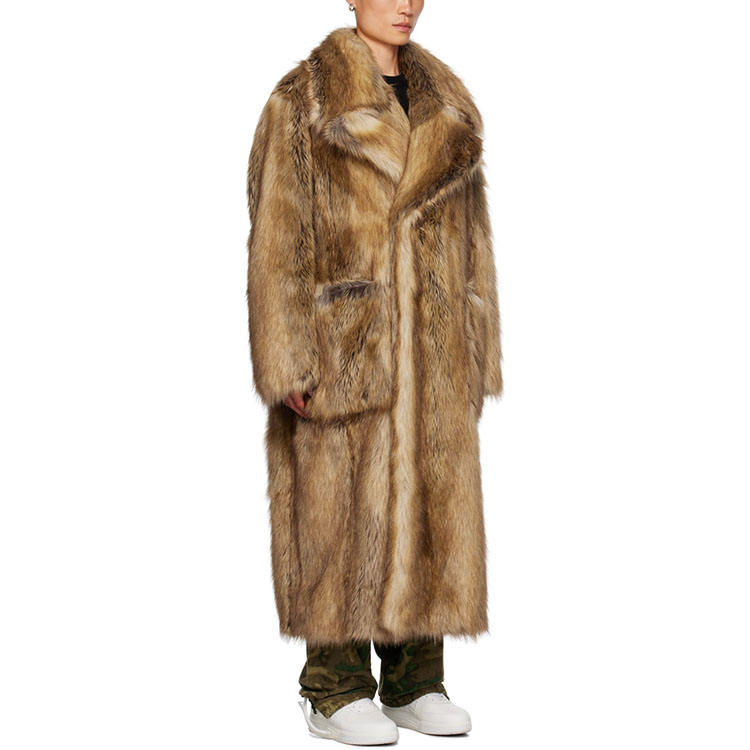 Beige Double-Breasted Faux-Fur Coat High Quality Fashion Design Custom Coat Men