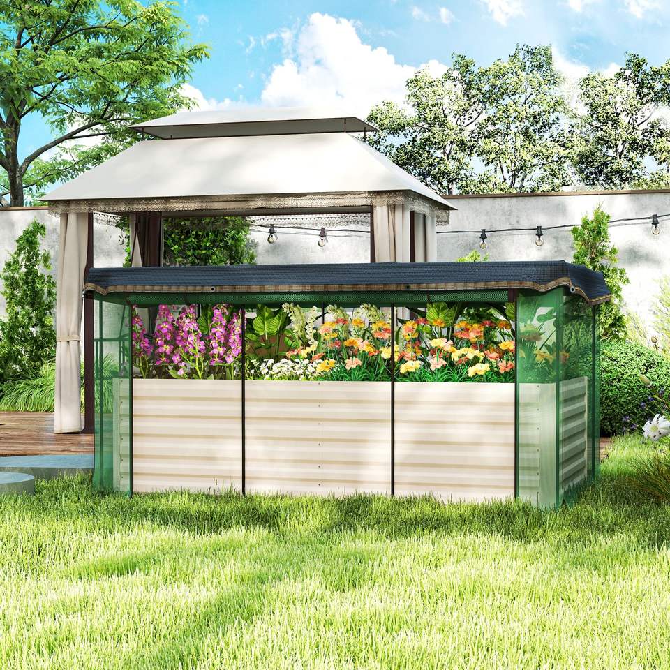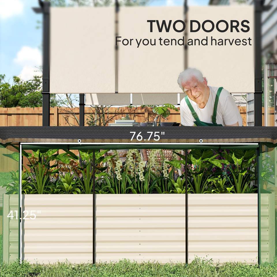 Beige Galvanized Steel Planter Box with Crop Cage and Shade Cloth Raised Garden Bed for Flowers Veggies Herbs