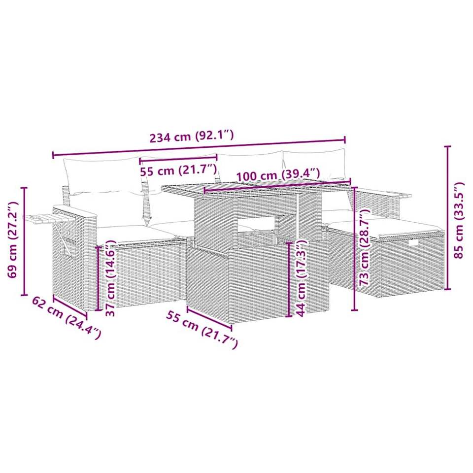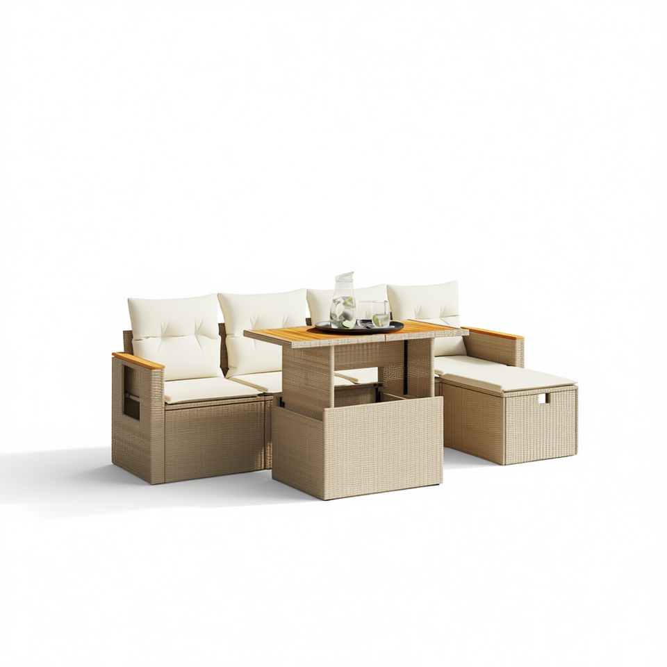 Set Divano da Giardino in Rattan Beige con Tavolo, 4 Posti, Arredamento da Esterno dal Design Contemporaneo