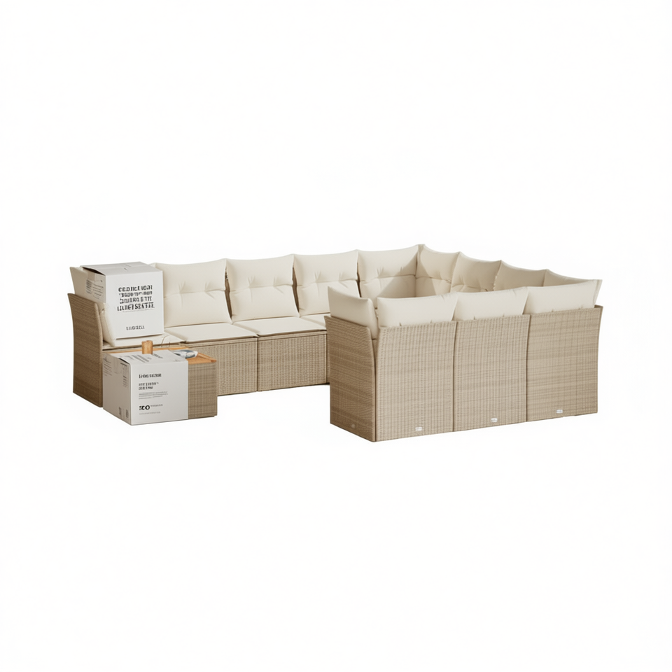 Set Divano da Giardino Beige 6 Posti in Rattan, Arredamento da Esterno Resistente alle Intemperie, Design Contemporaneo