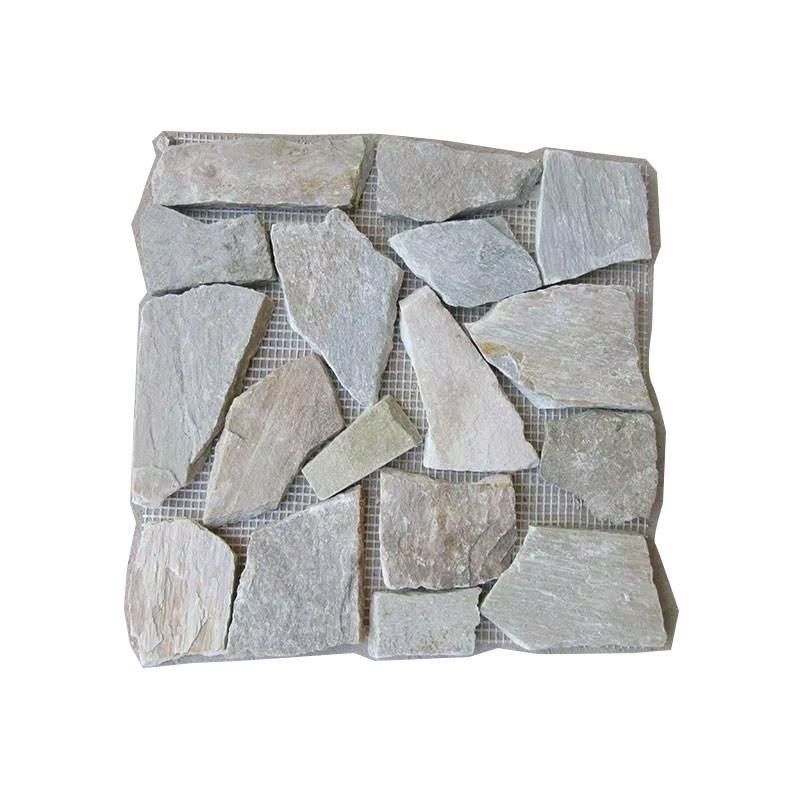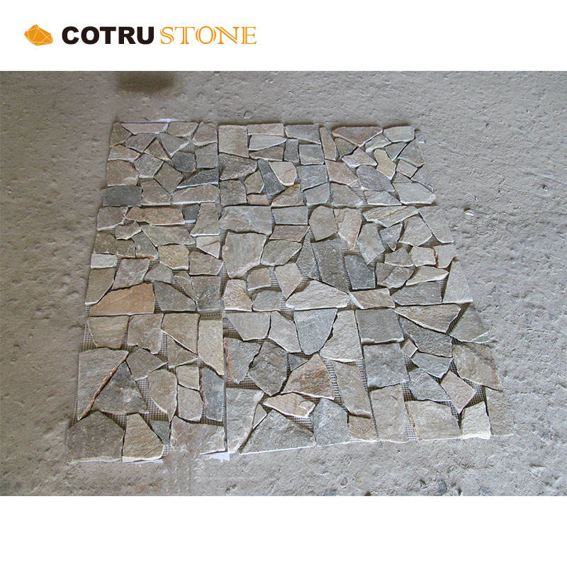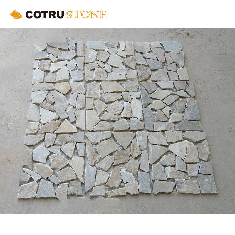 Pietra di quarzite naturale Beige verde naturale Modulare irregolare pannelli a mosaico in ardesia levigata personalizzati per il pavimento interno esterno del giardino