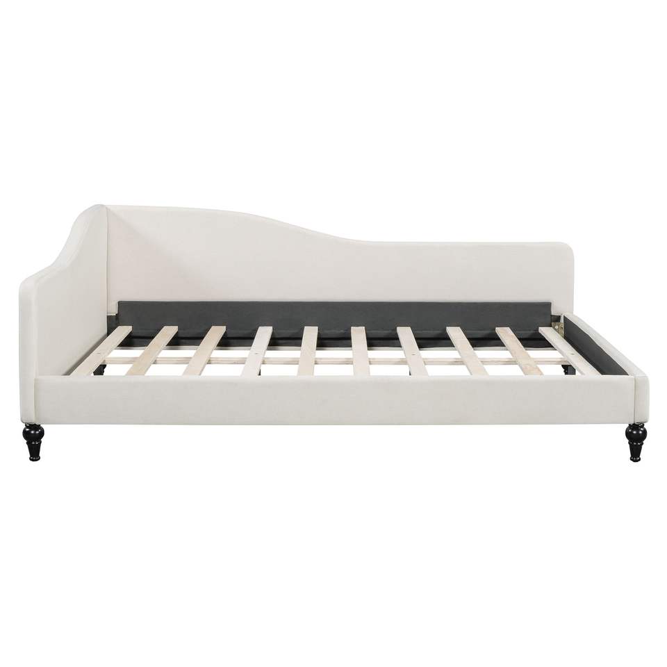 Divano letto a L in lino beige con gambe in legno massello, divano letto matrimoniale (Vecchio SKU SF000146AAA)