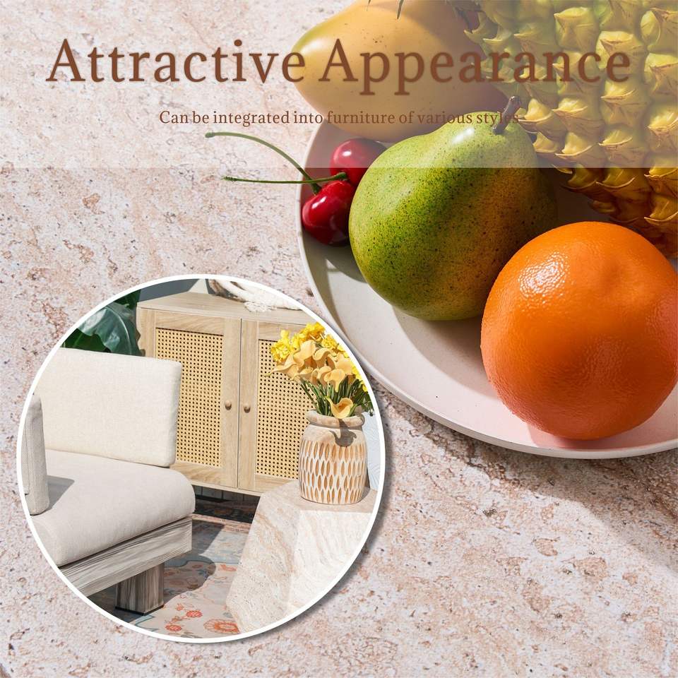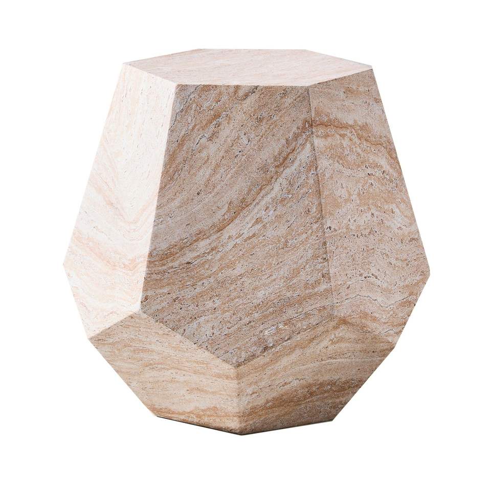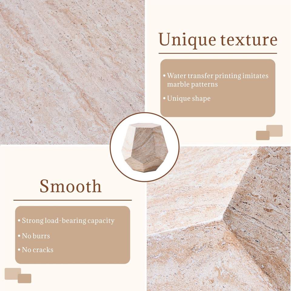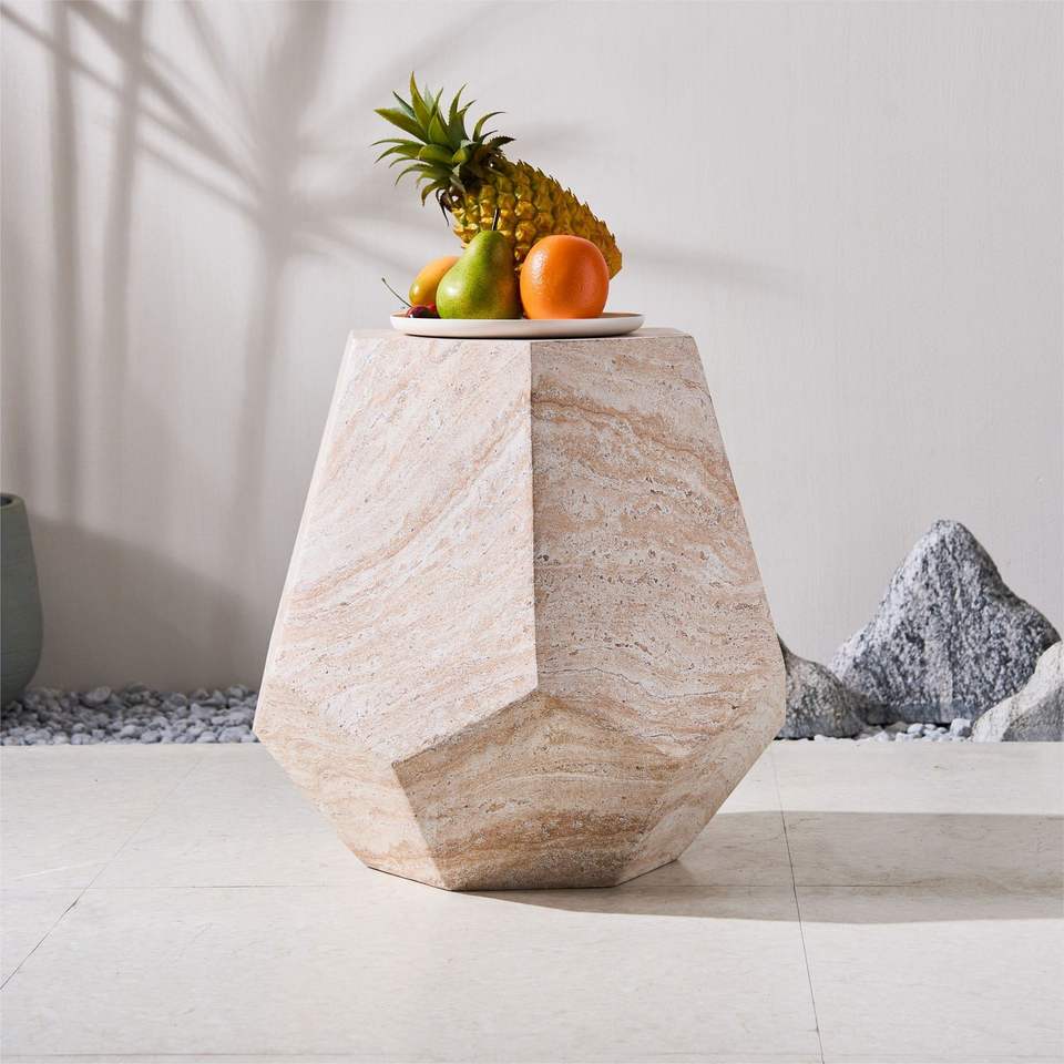Tavolino Decorativo Effetto Marmo Beige per Uso Interno ed Esterno Realizzato in Ossido di Magnesio