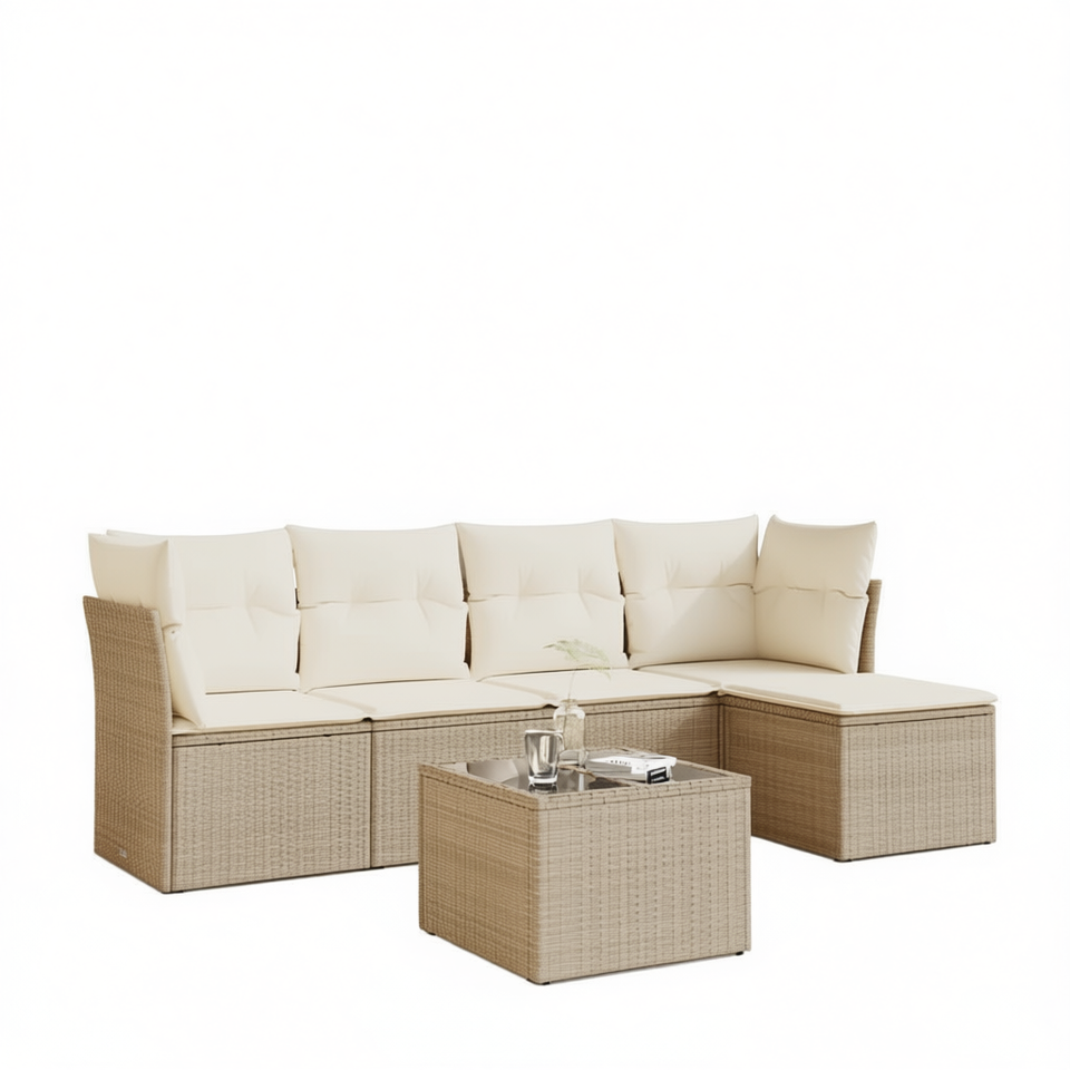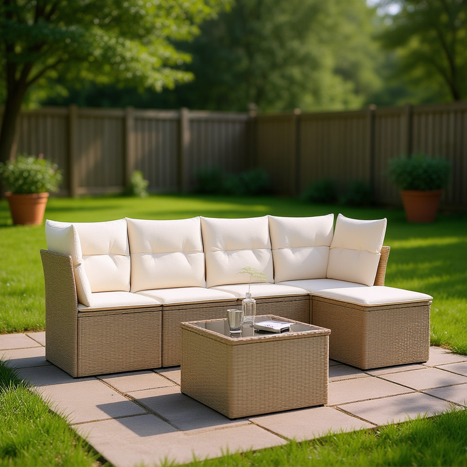 Beige Outdoor Garden Sofa Set With PE Rattan Frame And High Density Foam Cushions Contemporary Design Waterproof For Patio Use