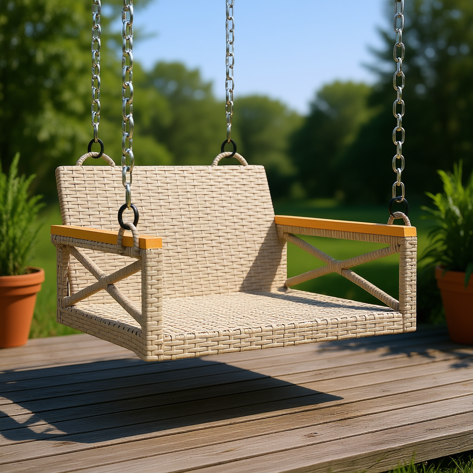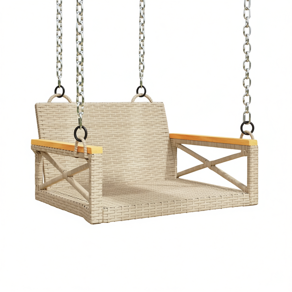 Dondolo da Giardino Beige in Rattan PE, Seduta per 2 Persone, Design Tradizionale