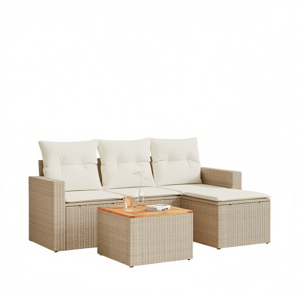 Set Divano da Giardino in Polyrattan a 3 Posti, Arredamento da Esterno dal Design Contemporaneo con Cuscini Beige Crema