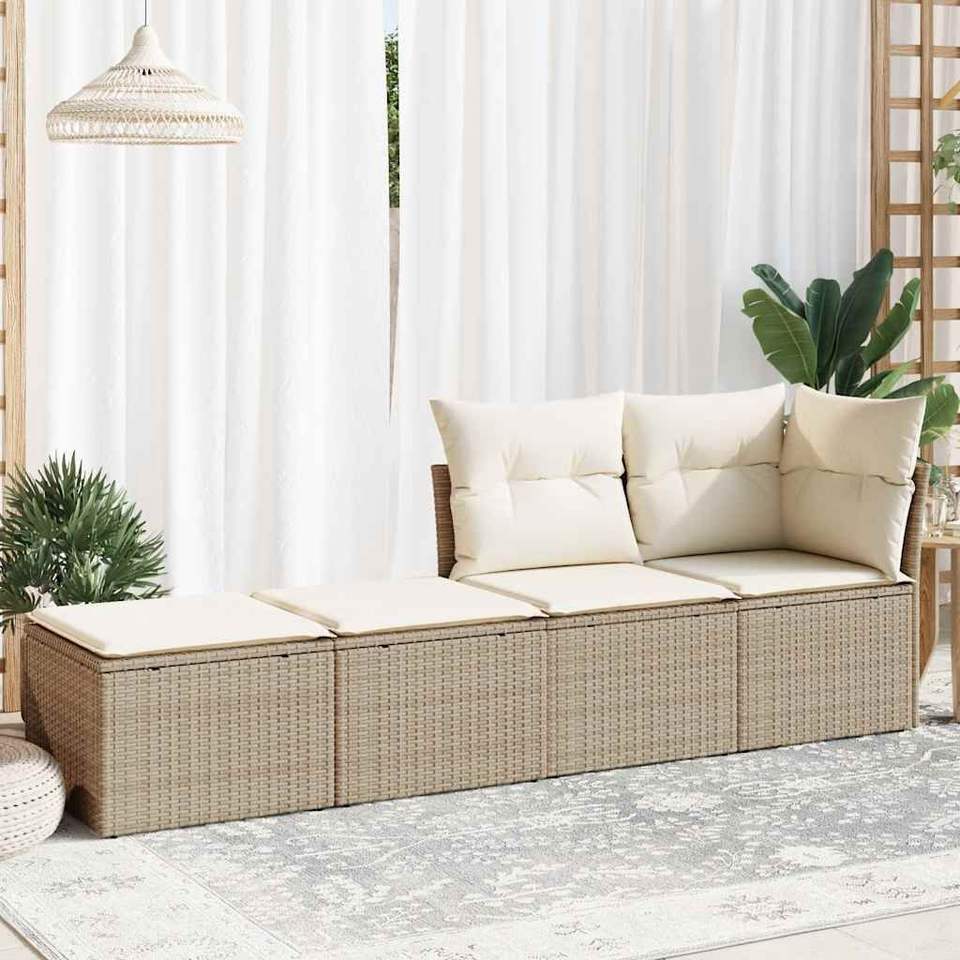 Beige Poly Rattan and Acacia Wood Garden Sofa Set Durable Storage Solution with Polyester Foam