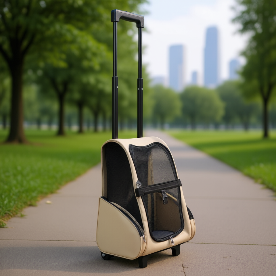 Pet Carrier With Wheel Beige Polyester Semi Circle Zipper Closure Pet Backpack Carrier For Small Pets