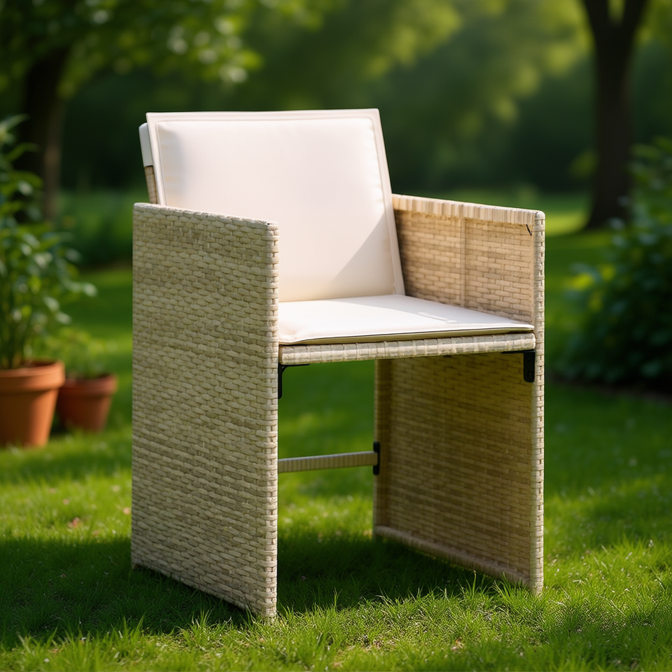 Sedia da Giardino in Rattan Beige con Cuscino, Arredamento da Esterno dal Design Contemporaneo
