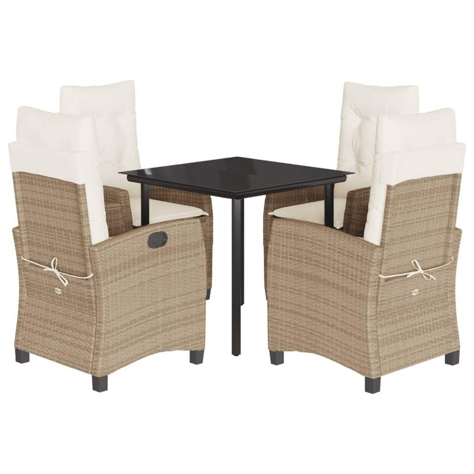 Set da Pranzo da Giardino in Rattan Beige per 4 Persone, Resistente alle Intemperie, Arredamento da Esterno in Stile Contemporaneo con Telaio in Acciaio