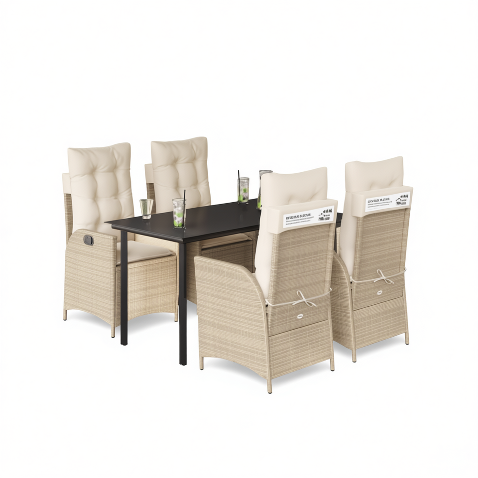 Set da Pranzo da Giardino in Rattan Beige per 4 Persone, Resistente alle Intemperie, Arredamento da Esterno in Stile Contemporaneo