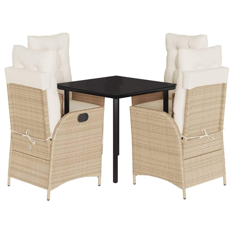 Set da Pranzo da Giardino in Rattan Beige per 4 Persone, Resistente alle Intemperie, Arredamento da Esterno in Stile Contemporaneo