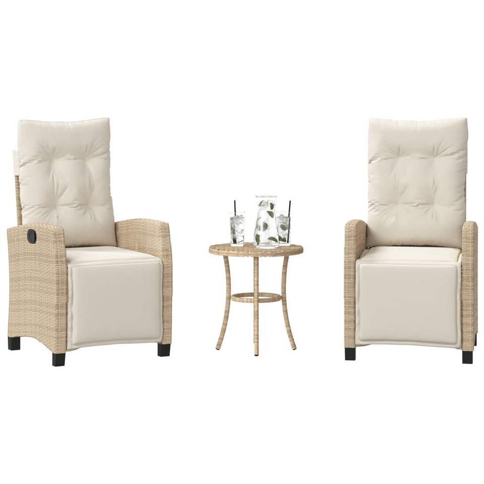 Set da Giardino in Rattan Beige a 2 Posti, Arredamento da Esterno Stile Bistrot Resistente alle Intemperie