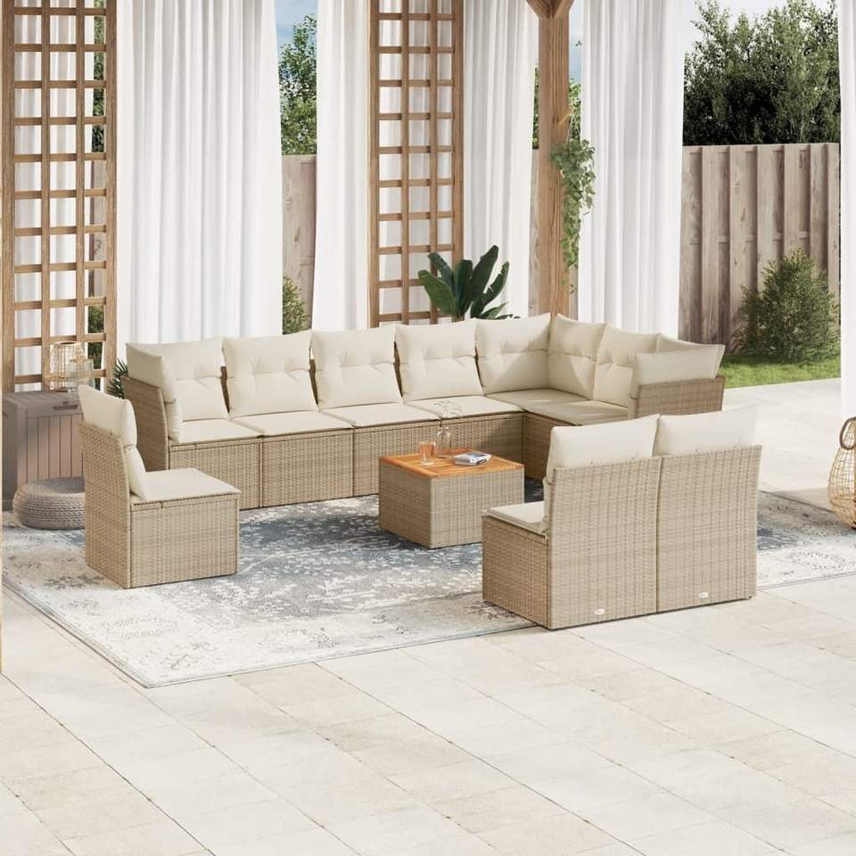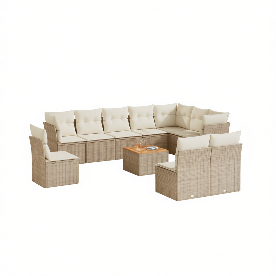 Set Divano da Giardino in Rattan Beige 6 Posti, Arredamento da Esterno Contemporaneo Resistente alle Intemperie