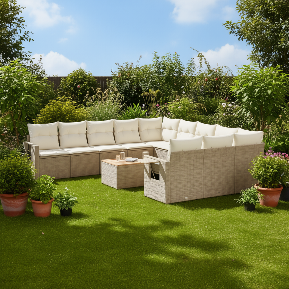 Set Divano da Giardino in Rattan Beige 6 Posti, Arredamento da Esterno Resistente alle Intemperie, Design Contemporaneo con Struttura in Vimini