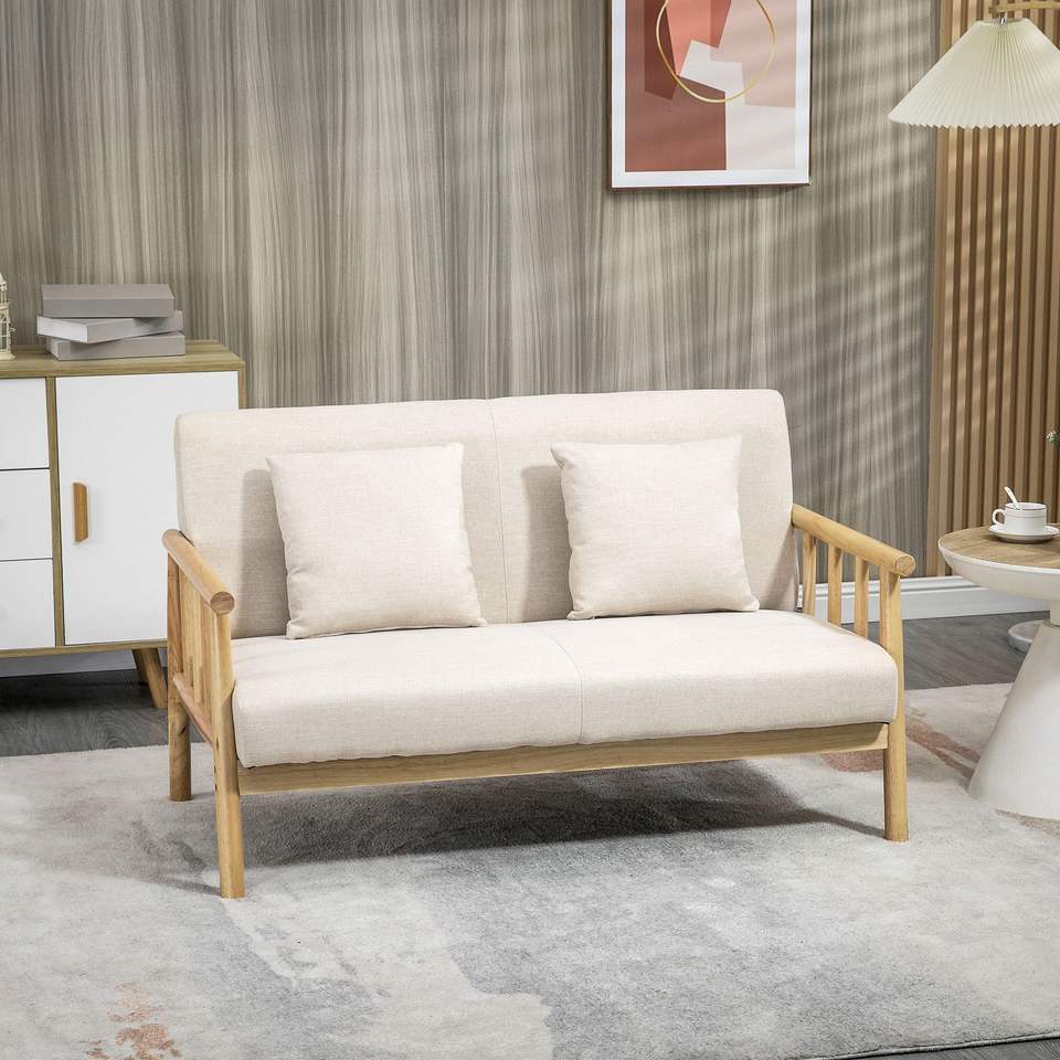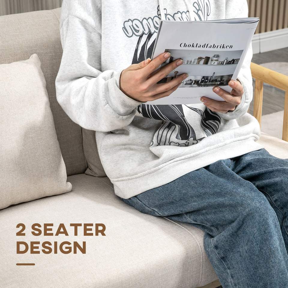 Divano a 2 Posti Beige Piccolo con Cuscini, Imbottito per Spazi Ristretti