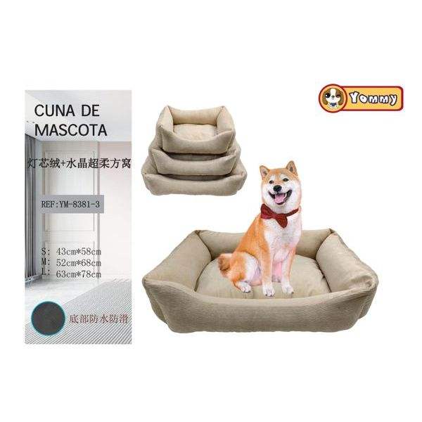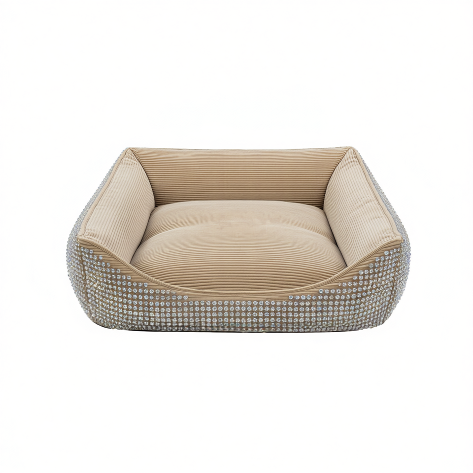 Beige Super Soft Dog Nest Three-Piece Set Corduroy+Crystal Pet Beds