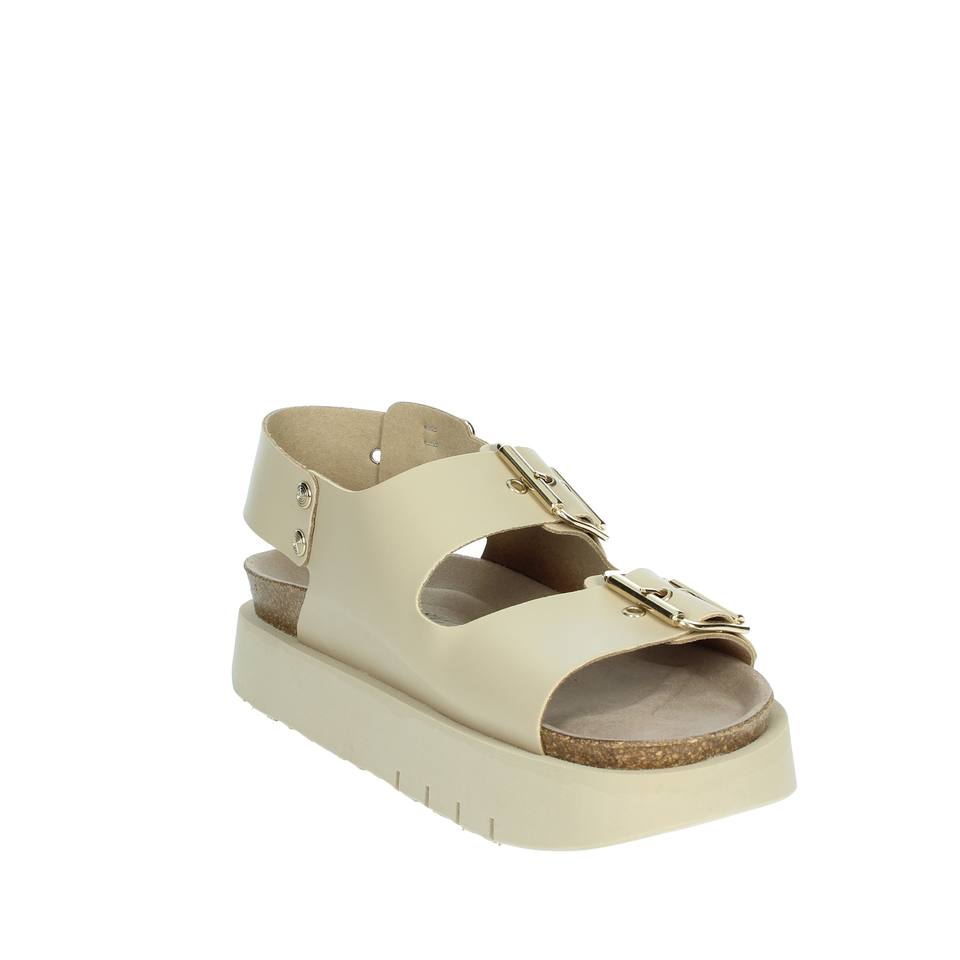 Beige Women's Heeled Sandals with Ankle Strap G104213 Wedge Heel and Platform Square Toe Fashionable Wedge Platform Elements