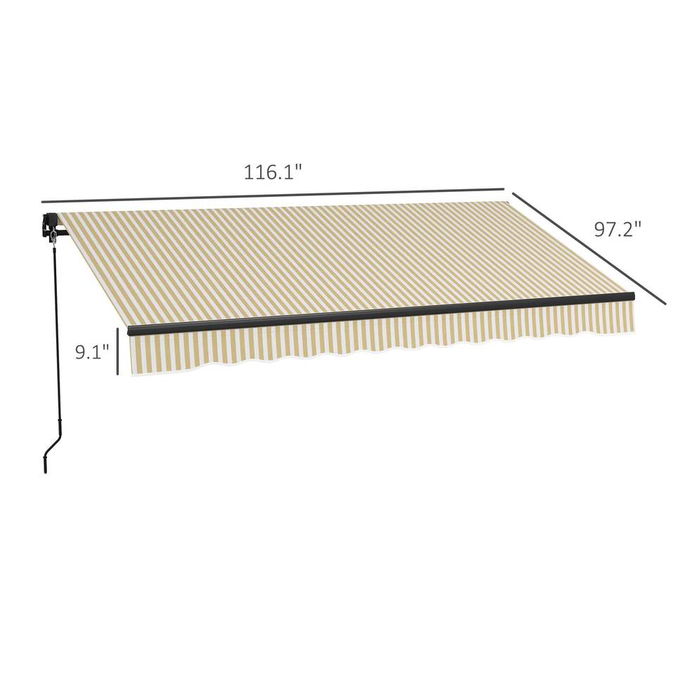 Tenda da Sole Retrattile Beige e Bianca 9,5 X 8, 280gsm Resistente ai Raggi UV, Riparo Parasole per Terrazza, Balcone, Giardino