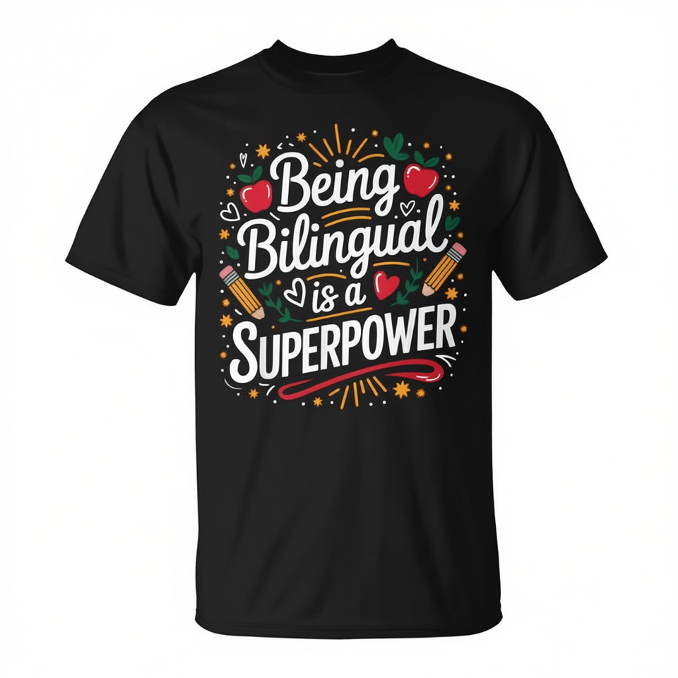 Essere Bilingue È una Superpotenza: T-Shirt Promozionale per Insegnanti di ESL a Tema Supereroi