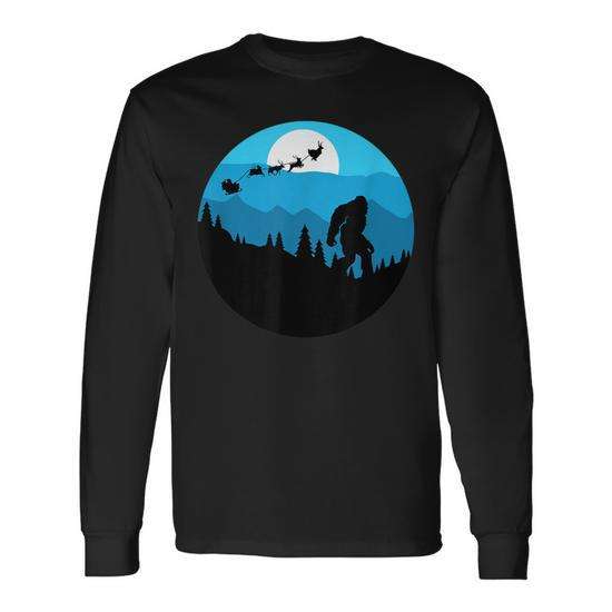 T-shirt a maniche lunghe con stampa retrò di paesaggio, Babbo Natale e renne Bigfoot - Prodotto promozionale