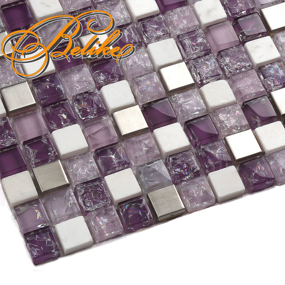 Piastrelle in Mosaico di Vetro Stile Moderno Belike, Decorazione Murale Viola Affascinante, 300x300mm Quadrate per Cucina e Bagno