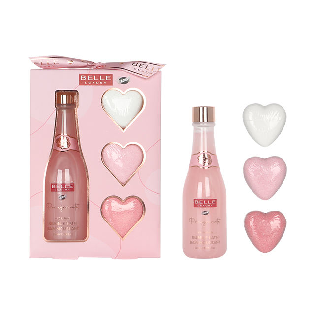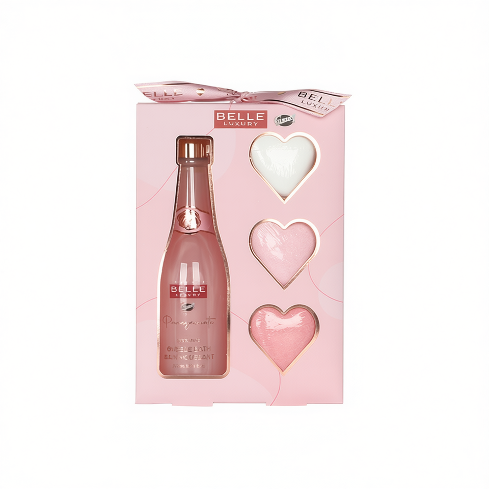 Set Regalo Belle Luxury Spa & Grenade con Fragranza Floreale, Bagnoschiuma da 200ml e 3x40g Pastiglie Effervescenti per i Propri Cari