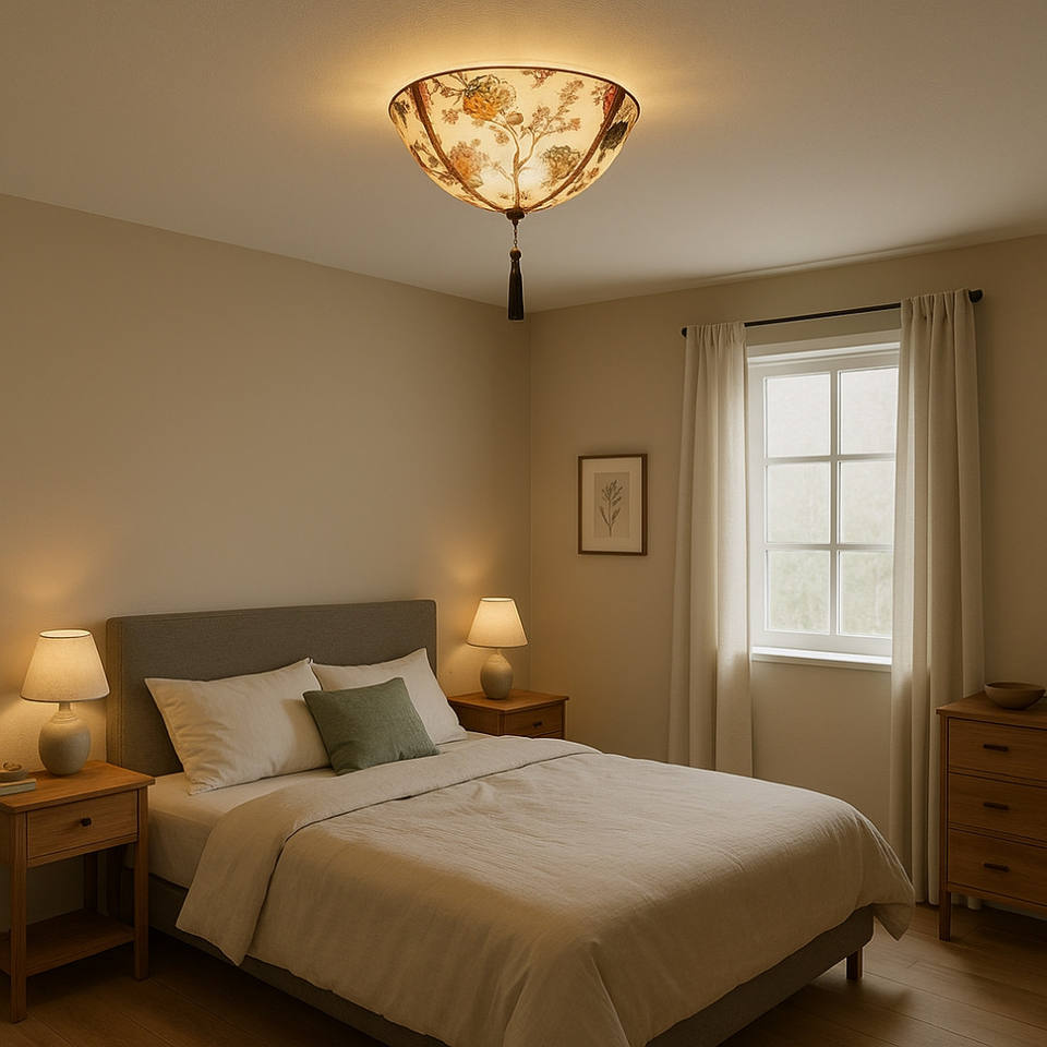 Belvedere ampio paralume in tessuto Tiffany, 3 luci a soffitto a filo/Semi filo.