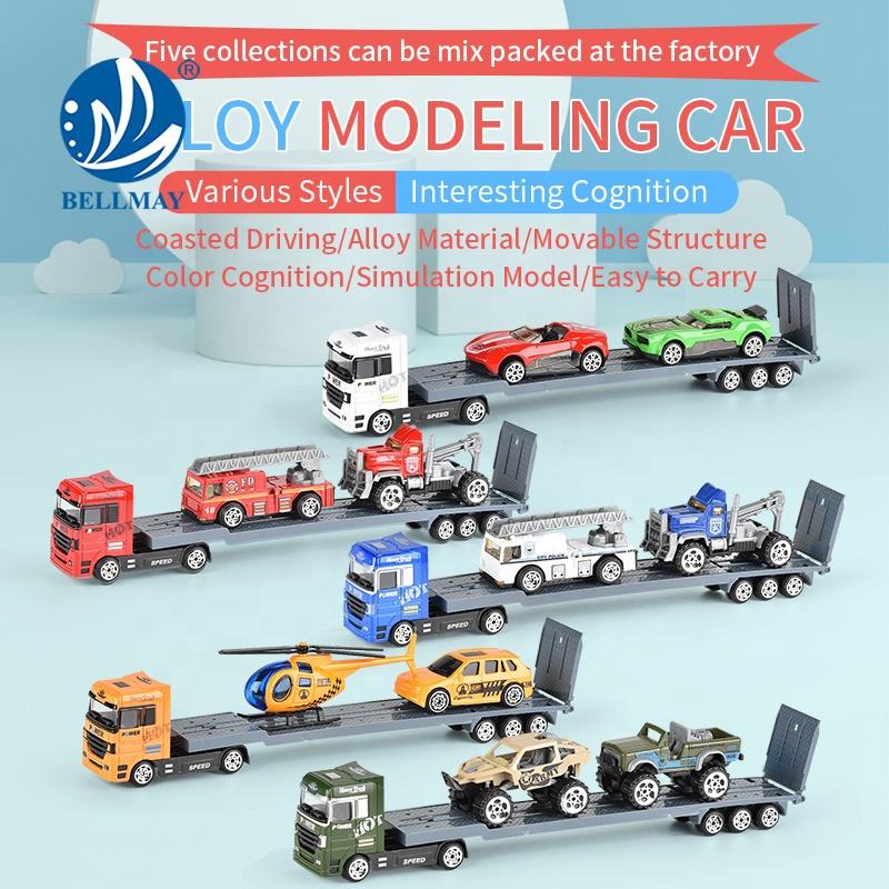 Bemay Toy Diecast Model Car Metal Scale Truck trattore europeo in lega scorrevole con 2 auto sportive
