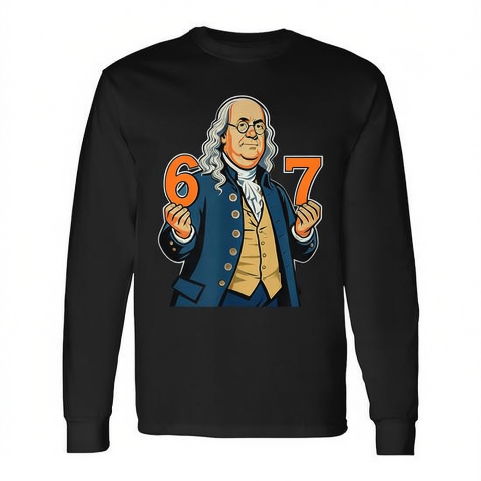 T-Shirt Unisex a Maniche Lunghe con Stampa Digitale 'Ben Franklin Six Seven American History', Modello Promozionale per Adulti Prodotto in Cina