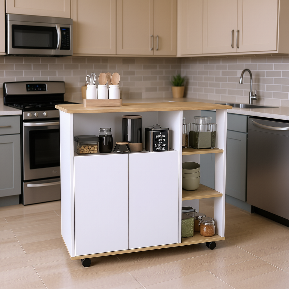 Carrello Portaoggetti Benton con 4 Ripiani, Design Moderno in Rovere Chiaro e Bianco, Resistente