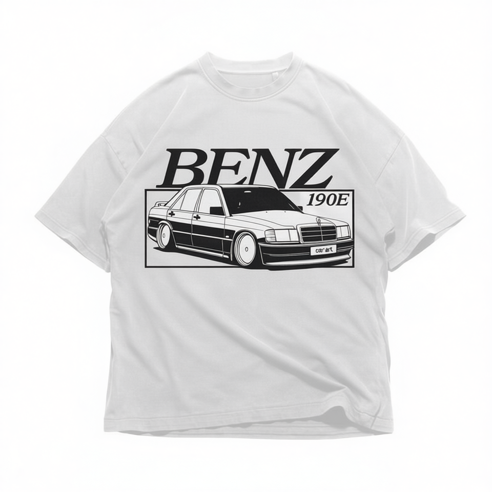 T-shirt con grafica Benz 190E Classic Car, t-shirt oversize Euro Drift Art per uomo e donna