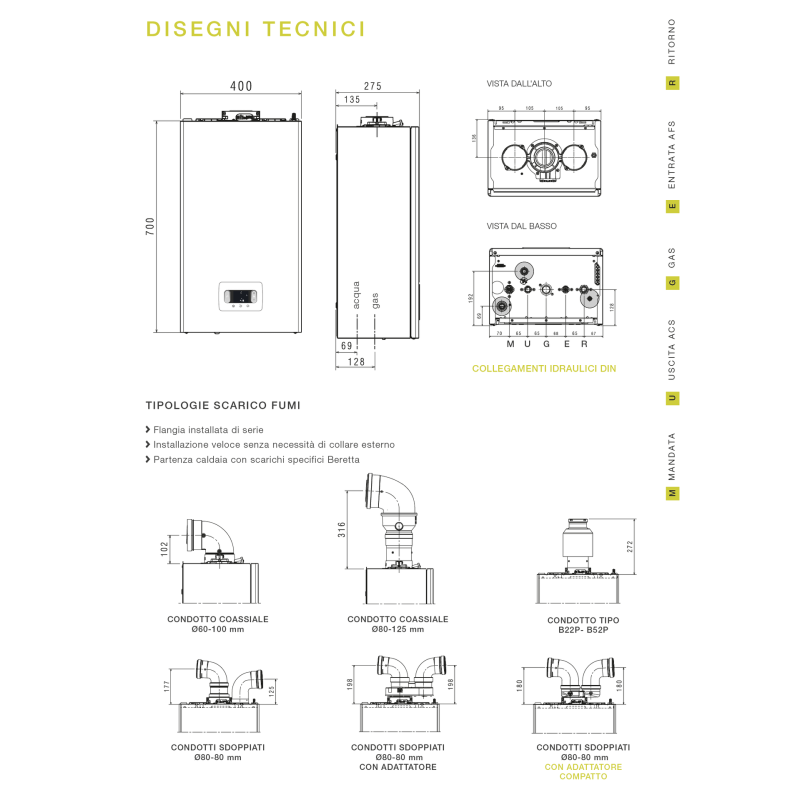 Caldaia a condensazione a gas GPL Beretta BLR 25C Classe 25 kW CSI ErP per uso bagno, riscaldatore a convezione a parete 1.500-1.999 piedi