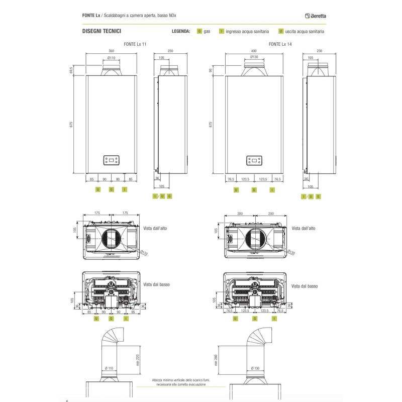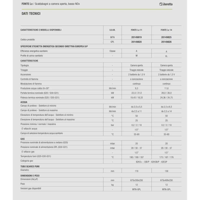 Scaldabagno a gas a camera aperta Beretta Fonte LX da 11 litri, a basso NOx, ErP, per gas metano