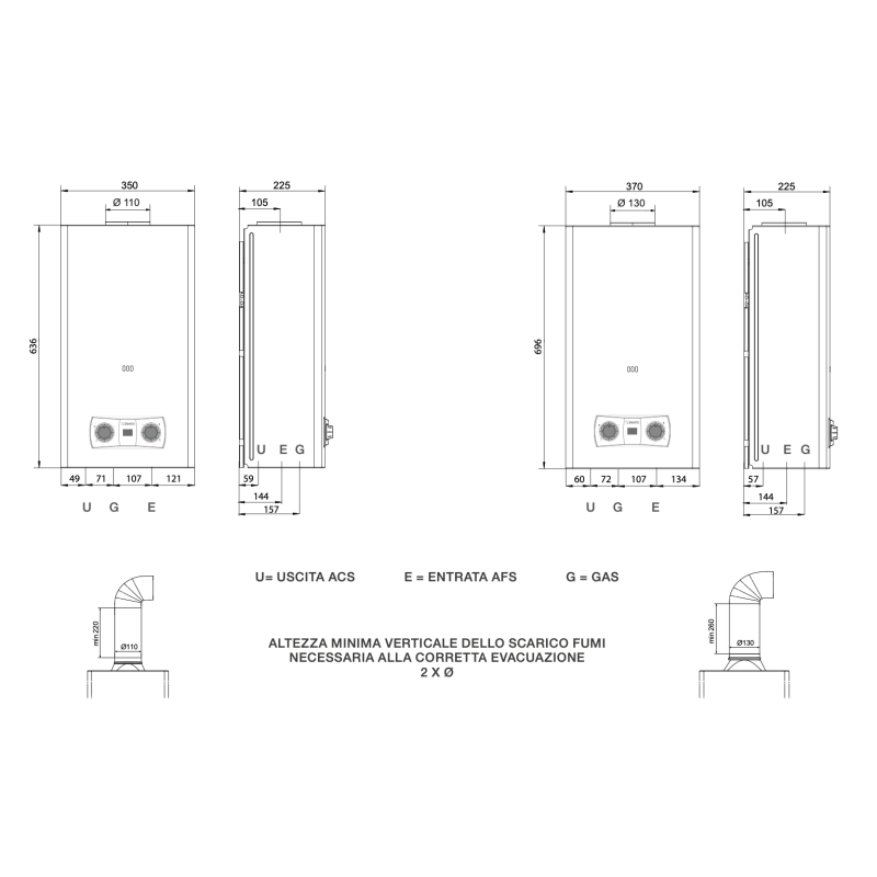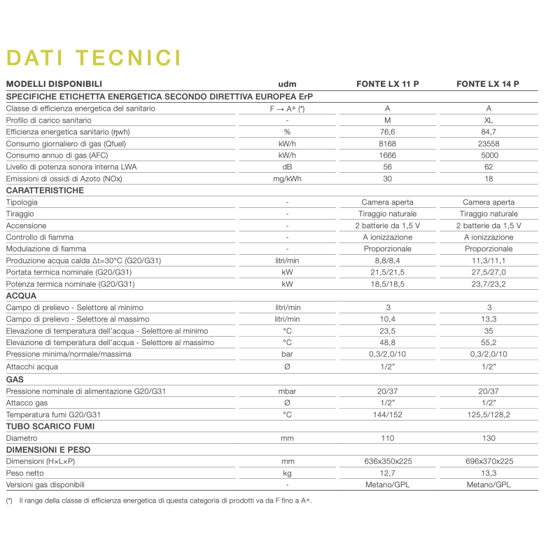 Scaldabagno a gas GPL a camera aperta Beretta Fonte LX P da 14 litri a basso NOx 20213231